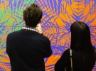 "Цвета не сочетаются, отталкивают друг друга, удивительным образом сосуществуют и примиряются в зоне периферийного зрения. Если рассеянным зрением некоторое время созерцать такие противоположности, этот оптический эффект проявляется. Тогда на границе, в зоне, так сказать, "опыления", - рождается объединительный третий цвет, и работа начинает оживать, цветные ритмы - двигаться и приобретать объем. Появляется пространственное расстояние между ними, и в работе проявляется то, что не было предусмотрено. Нечто подобное происходит с восприятием непривычных для слуха звуков", - объясняет свой замысел "Дезориентиров" художница Анна Миронова.