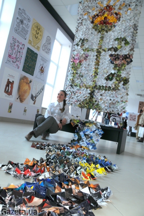 33-летний харьковский дизайнер Татьяна Новикова с коллегой Светланой Гореловой сделали инсталляцию из более 1 тысячи бумажных лотосов. Японское оригами показала 20-го апреля в киевском Музее современного искусства в рамках выставки плакатов "Экология культуры".