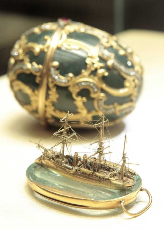 Высота яиц – 10 сантиметров. У некоторых из усыпанных драгоценными камнями пасхальных яиц внутри хранятся миниатюрные золотые корабли.