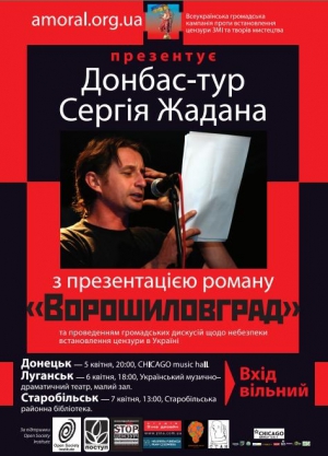"Донбасс-тур" писателя Сергея Жадана, запланированный на 5-7 апреля 2011 года, находится под угрозой срыва. Луганский украинский драматический театр и Донецкий национальный университет дали официальный отказ в предоставлении своих залов для презентации романа "Ворошиловград".