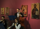 Играла камерная инструментальная музыка. В первую очередь исполнили Гимн Украины. Также были классические веселые итальянские мелодии. Президент осмотрел несколько залов выставки.