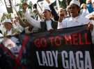 Радикальный "Фронт защитников ислама" угрожал попытаться помешать эксцентричной певице даже выйти из самолета. "Фронт защитников ислама" угрожал насилием, называя Леди Гагу "вестницей дьявола", одетой в один "лифчик и трусики".