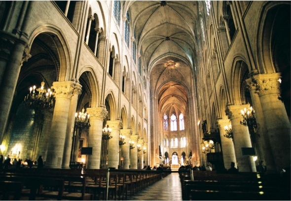 В IV веке на том месте, где сейчас стоит собор, была церковь святого Стефана. Ее разрушили во время нормандского вторжения. Строительство Собора Парижской Богоматери длилось почти два века: с 1163 по 1345 годы. Поэтому в архитектуре собора прослеживают романский и готический стили. При строительстве храма рассчитывали, что в нем смогут разместиться все жители тогдашнего Парижа - около 10 тыс. Внутреннее пространство собора занимают столбы, соединенные арками - стены отсутствуют. В самом высоком нефе мог бы расположиться 12-этажный дом. Крышу собора сделали из свинцовых плит весом 210 т. Вес колокола Эммануэль в восточной башне - 15 т. В него звонят в честь выдающихся событий. 25 июня 2009-го проходил крестный ход в собор Сен-Северен, на Нотр-Дам играли колокола. В этот день умер Майкл Джексон, и в толпе перед храмом подумали, что колокол звучит в честь американского певца.
