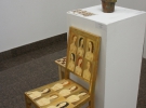Далее художники на свой вкус их оформляли. Кроме ширм, стульев и сундуков на выставке показывают авторскую керамику, живопись, графику. Сам проект - это эксперимент на грани искусства и дизайна. Здесь можно увидеть минималистичные, функциональные стулья и ширмы с пластинками. Или расписаные пейзажами или декорированные под телевизор сундуки, разрисованные торшеры и футуристические скульптуры.