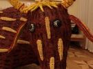 "Например, на льва ушло 10-15 килограмм сена. Сначала я делал каркас - внутри все существа пустые. С помощью специальной тонкой лески и проклейки закреплял послойно сено. Затем покрывал животных акриловыми красками. Видимо, над львом было труднее всего работать. У него много деталей. Надо было хорошо выложить гриву и усы. И сено почему-то оказалось более жестким", - объясняет художник.