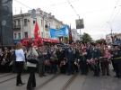В Виннице праздничное шествие ко Дню Победы началась в 13.00 с площади Независимости. Центральные улицы Соборную и Театральную полностью заполнили горожане. Центр города перекрыли для движения транспорта на 3 часа.