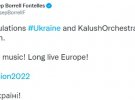 Представитель ЕС по внешней политике Жозеп Боррель также поздравил Kalush Orchestra и Украину с победой.