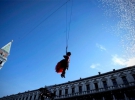 Особый ажиотаж туристов был связан с "Полетом Ангела" и "Полетом Орла", во время которых отважные девушки спускались на тросе на сцену карнавального театра прямо с вершины знаменитой 99-метровой колокольни Сан-Марко.
