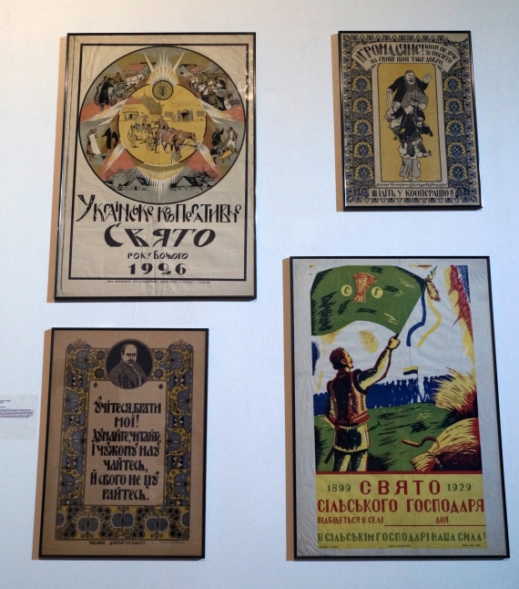 Начинают выставку плакаты конца XIX века из Львовского музея этнографии и художественного промысла. Европейские модные веяния в жанре плаката не обошли Львов, тогда один из важных культурных центров на Востоке Австро-Венгрии. Видим совсем европейские по стилю афиши. Из Львова привезли несколько плакатов всемирно известного чешского художника Альфонса Мухи, основателя стиля ар-нуво. В частности, отреставрированный поздравительный плакат фирмы Нестле, созданный к 60-летию восхождения на британский трон королевы Виктории. Этот плакат существует в мире в единственном экземляре. Также можно увидеть одну из известных работ Мухи из цикла "Зодиак". Есть много рекламных плакатов начала ХХ столетия с изысканными женскими силуэтами джазовой суток. А старинную рекламу львовского пива производители любят использовать до сих пор.