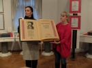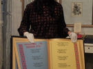 10 месяцев Елена Медведева из Ровно вышивала сборник Ивана Франко "Народная песня". Книга - 60 см в высоту и 40 см - в ширину. Весит 5 кг. Ее показывают в столичном Музее книги и книгопечатания. Здесь до 19 января 2017 года будет работать выставка арт-буков Елены Медведевой.