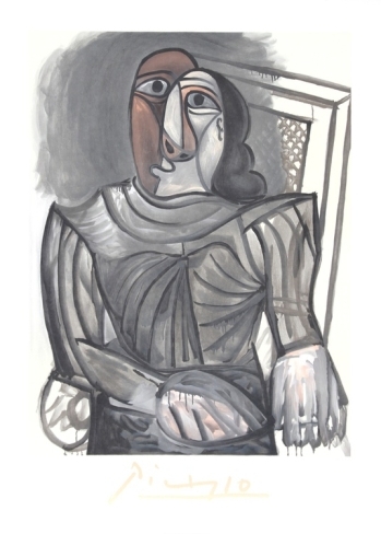 Марина собирается продать полотно "Сидящая женщина в сером платье" / "Femme assise en robe grise", написанное маэстро 31 августа 1943 и натюрморт "Палитра и голова быка" / "Palette et Tete de Taureau" 1938 года. Оценочная стоимость первого полотна более 2,5 млн евро, натюрморта - более 1 млн евро. Оба полотна перед торгами, которые пройдут 6 июня, покажут на выставках в Нью-Йорке, Москве и Париже.