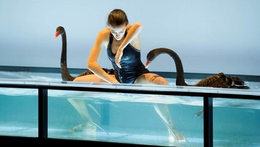 На сцене появляются как белые, так и черные лебеди, которые в первой части постановки плавают в желобе с водой, символизирующем реку Стикс. Белые лебеди появляются на сцене во втором акте - причем каждый раз, когда птицы оказываются на сцене, танец становится медленнее.