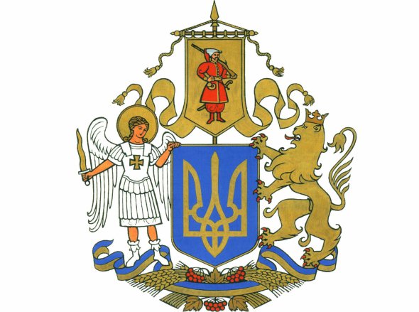 Официальный герб Украины (синий щит с золотым трезубцем) имеет статус малого герба. Однако описание большого герба законодательно не определен.