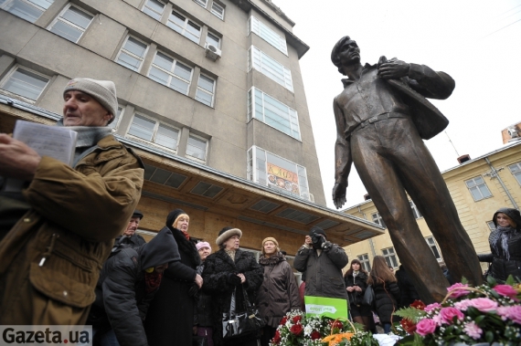 Во Львове на проспекте Тараса Шевченко сегодня открыли первый памятник композитору и певцу Владимиру Ивасюку. На открытие пришел певец Святослав Вакарчук, который вечером даст два своих концерта во Львове.