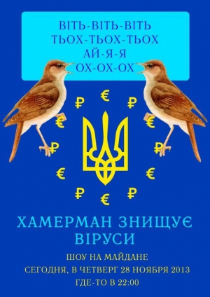 "В ночь на 29 ноября, когда группе Хамерман Знищує Віруси не разрешили спеть песню "Янукович" на революционном Евромайдане, за них это сделал таинственный мент - возможно, тот единственный, который "с народом", - комментируют участники группы.