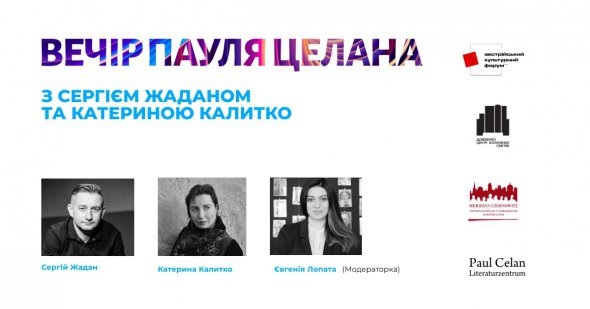 Литературный вечер Пауля Целана при участии писателей Сергея Жадана и Екатерины Калитко пройдет 3 декабря в столичном Национальном центре Александра Довженко. Состоится по случаю 100-летия со дня рождения немецкоязычного поэта из Черновцов.