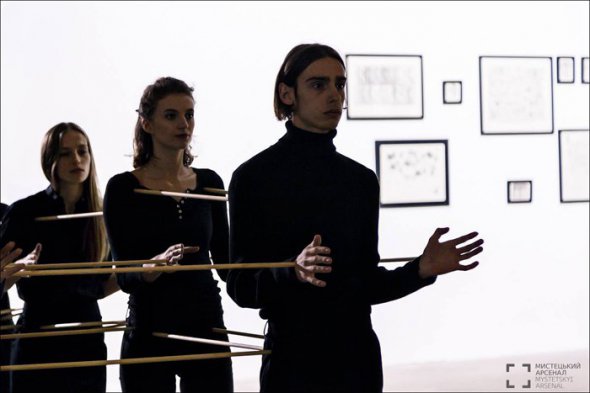 Проводили дважды - на столичном Майдане Независимости и в Художественном арсенале. 12 человек удерживали своими телами длинные жерди. Не касались друг друга напрямую. Образовали единое коллективное тело, которое может двигаться только до тех пор, пока участники будут взаимодействовать. В обоих местах был большой поток людей, занятых своими делами и не настроенных на взаимодействие с другими.