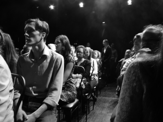 Герои по одному заходят в зал и рассказывают о том, что думали или делали в последний момент перед смертью. Некоторые из актеров сидят среди зрителей. "Я спускалась по лестнице и видела, как у двух девушек взлетают головы", - говорит ученица Каро, постоянно снимала жизнь школы на камеру. Они школьники и преподаватели, которых застрелил ученик-социопат. Зал кажется, классом, а герои, как выходят к доске отвечать.