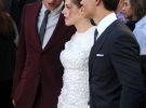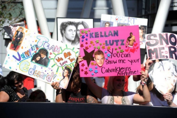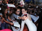 По свидетельству очевидцев, в Лос-Анджелесе вдоль черной ковровой дорожки толпилось столько же фанатов, сколько в 60-е собиралось к приезду The Beatles. Кристен в белом платье от Elie Saab и Паттинсон в бордовом костюме от Gucci терпеливо раздавали автографы.