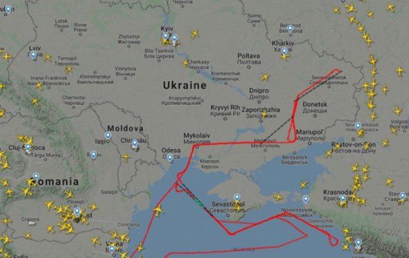 Согласно координатам, БПЛА на высоте 15 тысяч метров он залетел в зону, которую Россия с 21 по 24 апреля закрыла для полетов.