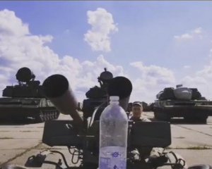 Украинский боец ВСУ, управляя зенитной установкой ЗУ-23-2, принял участие в флешмобе, открутив крышку бутылки дулом установки.
