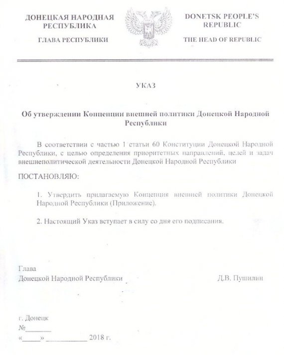 Правительство России разработало для террористической группировки ДНР "концепцию внешней политики".