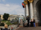 "Правый сектор" анонсировал прощание на 15:00. В это время около стелы собираются военные, волонтеры, журналисты и неравнодушные киевляне. Многие с цветами и детьми.
