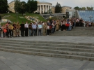 Играет "Ще не вмерла". Люди формируют так называемый коридор с обеих сторон к стеле и подпевают гимн.