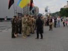 Постепенно прибывают бойцы разных подразделений: "ОУН", "Донбасс", "Айдар", ВСУ и другие. Они стоят группками у входа в подземный переход, под стелой и на лестнице. Людей также становится больше.