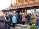 Прощаться пришли сотни горожан, они становились на колени перед гробом.