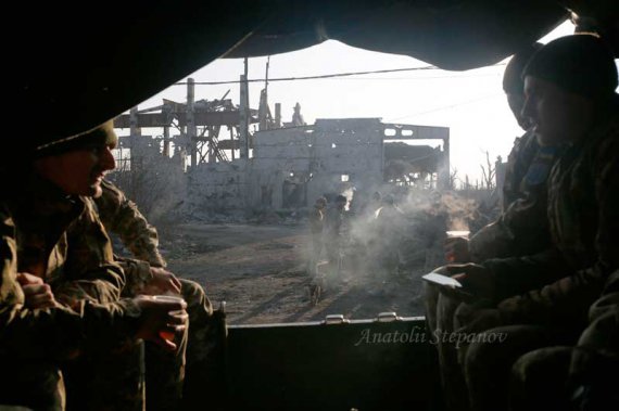 Разбитая "Бутовка" встречает скрипом и скрежетом железа. Ветер поет первоначальную песню в обломках искореженного копра. Здесь воины легендарной 93-й держат оборону. Седовласые мужчины и совсем молодые ребята. И надо видеть как летний седой солдат отчество обращается к командиру, который ему в сыновья годится", - говорится в сообщении.