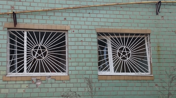 Едем по Станице. Здесь на всех улицах разбиты дома. Подъезжаем к бывшему отделению милиции. Он разрушен. Все окна без стекол, только решетки в виде пентаграмм на первом этаже. Стекло или внутри, или на улице. Внутри еще что-то осталось от мебели. На одном окне маленькая пыльная иконка.