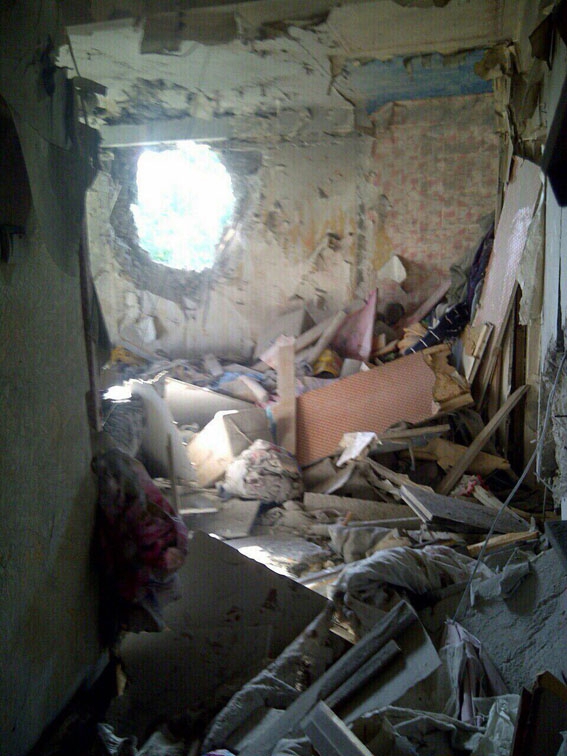 В результате прямого попадания снаряда жилой дом получил значительные повреждения, пять квартир мирных жителей разрушены.