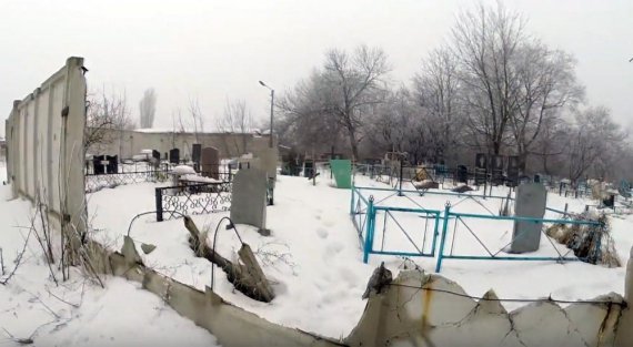 "Прифронтовой кладбище. Дыры в заборе, где пролета вообще нет. Но именно кладбище пострадало частично - где памятники стоят, где повреждены", - говорит он.