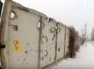"Впереди - "Метро", с левой стороны за забором - уже аэропорт. Здесь все разбито. Дома - разбитые, заборы - в решето. Но путь наезжен - значит, ездят", - отмечает Донецка. - Школа № 74 не работает, но, несмотря на это, - на здании висит флаг "ДНР".