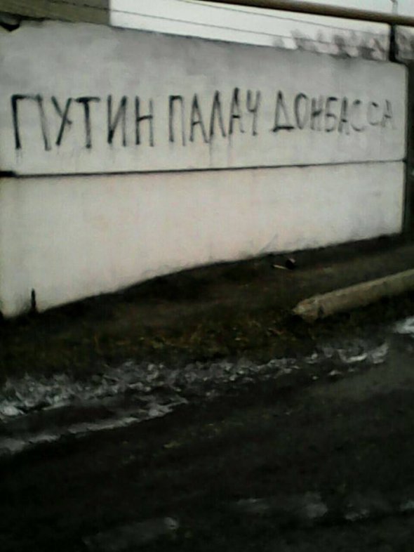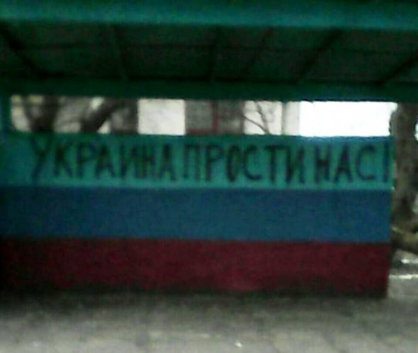 В граффити активисты пишут: "Путин - палач Донбасса", "Украина, прости нас".