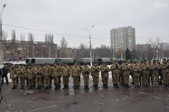 Военных встретили жители города цветами и обплескамы, передает 0629.com.ua