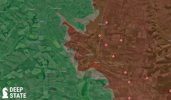 Враг активно давит на Ямполевку, имел успех в Тернах и фактически почти полностью оккупировал населенный пункт. Об этом сообщили аналитики проекта DeepState.