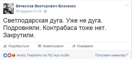 "Светлодарска дуга. Уже не дуга. Подравняли. Контрабаса тоже нет. Закрутили", - отметил.