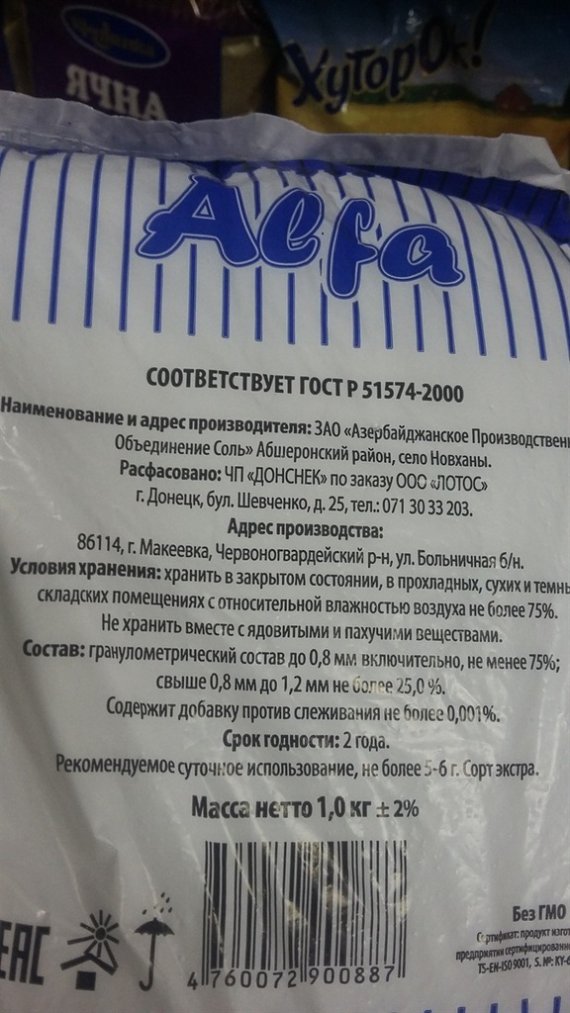 "На полках" первого республиканского "хватает продукции Енакиевского и Горловского мясокомбинатов, Донецкого хлебобулочных комбината, Еленовского мукомольного, молочной продукции" Добрыня ". Соль есть, но не донецкая. Только" экстра "и издалека - из Казахстана или Азербайджана. на этикетке привлекательное название "Славяна", но в Славянск или Бахмута эта соль никакого отношения не имеет ", сообщают журналисты.