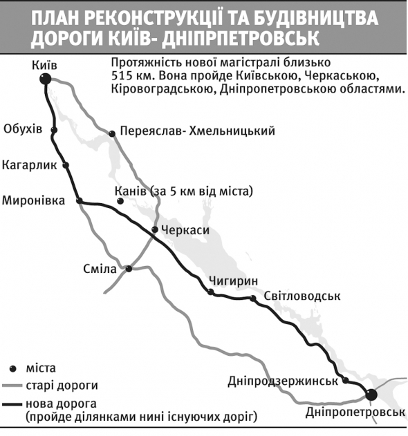 - Мы несколько раз встречались с вице-премьером Борисом Колесниковым. Обсуждали детали. Сначала Киев склонялся к варианту автобана по Левому берегу. Мне удалось убедить, что это будет дорого - надо возводить широкий мост где-то в районе Черкасс (у нынешнего моста по одной полосе движения в каждую сторону. - Gazeta.ua). Транзитному транспорту в Кировоград и дальше пришлось бы несколько раз переезжать с берега на берег.