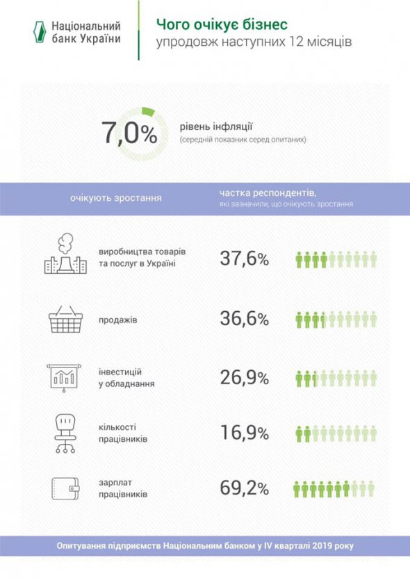 Также бизнес ожидает инфляцию на уровне 7%. Это значение близко к среднесрочной инфляционной цели НБУ - 5 +/-1%.