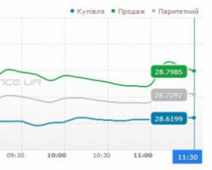 По состоянию на 11:30 покупатели выставляли заявки в среднем по 28,61 грн за доллар, продавцы - на уровне 28,79 грн за доллар. Объем предложений продавцов почти втрое превышает объем предложений покупателей.