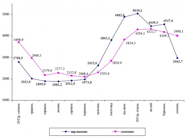 На протяжении января-апреля 2013 населением оплачено за жилищно-коммунальные услуги 16,8 млрд грн (98,7% начисленных за этот период сумм).