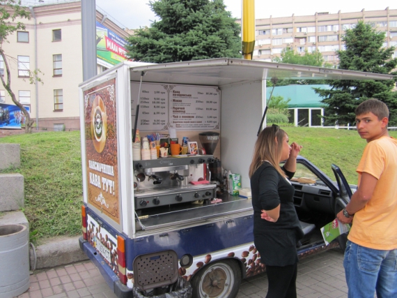 "В Варшаве автокафе очень популярны. Они паркуются возле крупных бизнес-центров. Офисные работники могут выйти, купить себе кофе и подышать свежим воздухом. Мы конкурируем в цене разве что с кофейными автоматами. Там кофе по 4-5 гривен. Но воду меняют редко. Да и качество ее не всегда соответствует требованиям. Там вода из-под крана, а у нас бутылированная".