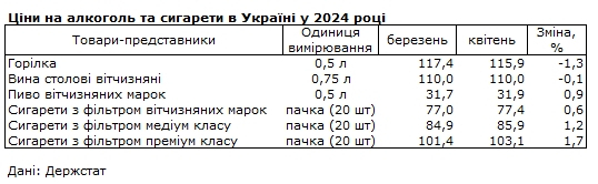 Цены на алкоголь и сигареты по данным Госстата, в апреле 2024 года: