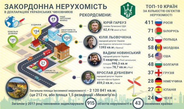 В прошлом году украинские чиновники задекларировали 915 объектов недвижимости в 43 странах мира. Больше всего в России, Беларуси, Польше и Молдове.