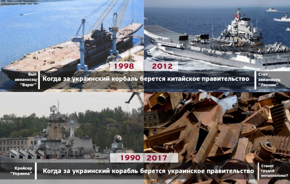 Коновалюк отметил, что почти 20 лет назад предшественники нынешней власти поступили также недальновидно, продав авианосец "Варяг" китайскому бизнесмену под плавучее казино.