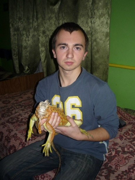 Коломиянин Александр Кукурудз коллекционирует ящериц, летучих мышей, многоножек, тараканов и земноводных. 25-летний биолог дома имеет более тысячи экзотических животных. Держит и разводит их в двухкомнатной квартире.