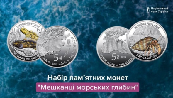 Монеты посвящены обитателям Черного и Азовского морей - раку-отшельнику и бычку-кругляку. Об этом сообщает пресс-служба НБУ.
